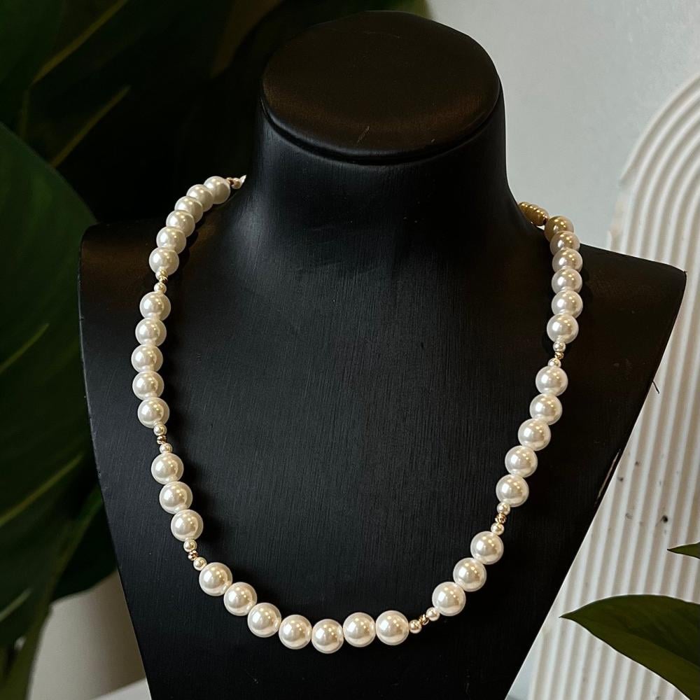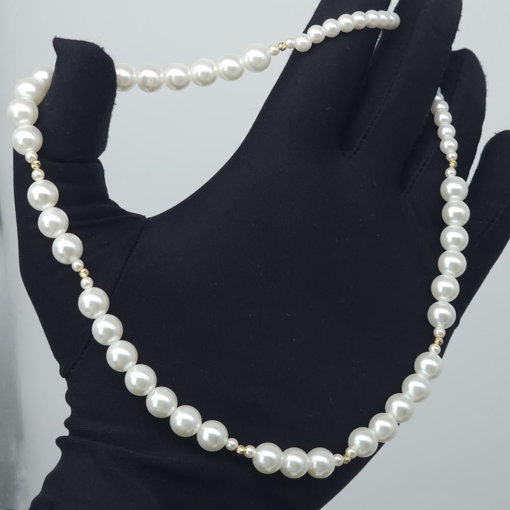 عقد لؤلؤ طبيعي بتصميم الكرات الذهبية لإطلالة كلها فخامة