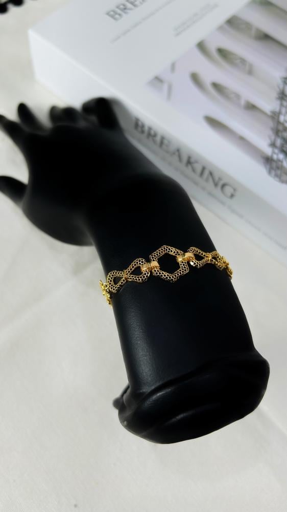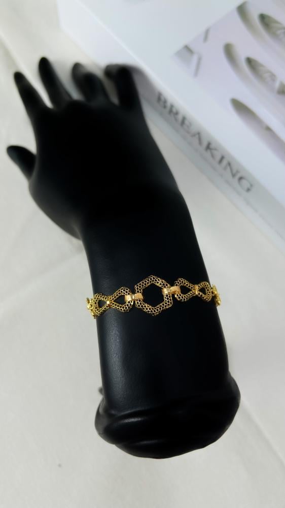 تميزي بإطلالة عصرية مع اسوارة ذهب عيار 21 بوزن 5.7 جرام بتصميم هندسي فخم, يجمع بين الأناقة والجرأة بتفاصيلها المتناسقة التي تعكس الإبداع والتميز. تصميمها الفريد يضفي لمسة من الرقي على معصمك، مما يجعلها القطعة المثالية لكل من تبحث عن إكسسوار يجمع بين الحداثة والفخامة.