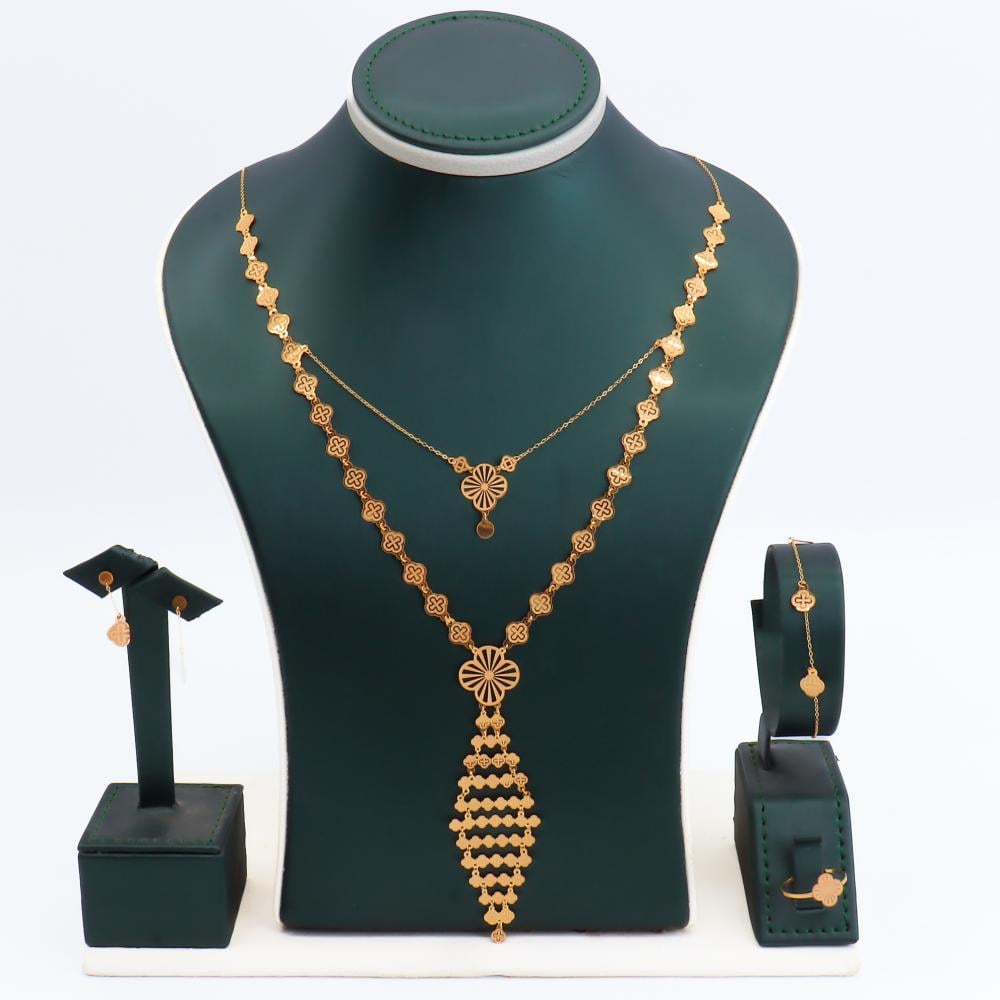 - يحتوي الطقم: عقد – خاتم – حلق – أساورة - مخنق