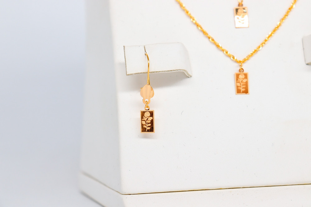 طقم ذهب سبيكه مربع دورين عيار 21 بتصميمه الخيالي وبتفاصيله الجميله صنع ليعبر عن اطلاله تليق بك سيدتي ، اطلبية الان واستمتعي بذهب يدوم لأجلك.