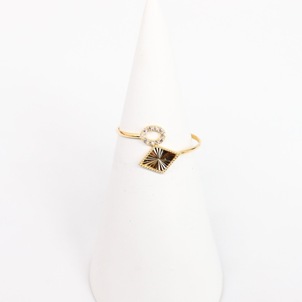 خاتم ذهب عيار 18، بوزن 0.6 جرام. يتميز هذا الخاتم بتصميمه الفاخر والأنيق، حيث يجسد الرقي بفضل تصميم الالماس اللامع الذي يعكس الضوء بطريقة مذهلة. التصميم الماسي يضيف لمسة من التميز والجاذبية، بينما الوزن الخفيف يجعله مناسباً للارتداء اليومي والمناسبات الخاصة. يعتبر خياراً مثالياً لمن تبحث عن قطعة ذهبية تضيف لمسة من الفخامة إلى إطلالتها.