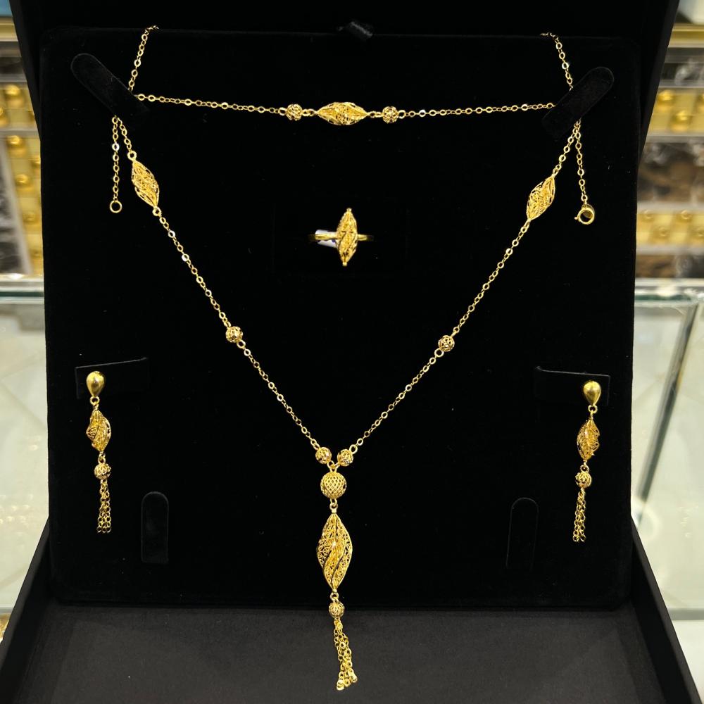 لا تفوتين فرصة تشوفين باقي تصاميمنا الفاخرة في اطقم ذهب عيار 21، بتلاقين قطع مميزة تكمل طلتك وتزيدها جمال وأناقة!