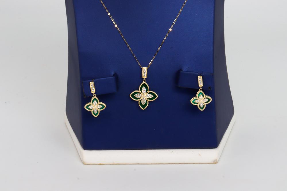تميزي بطقم الذهب من روبيرتو كوين بتصميم ألماسي بعيار 18 بوزن 9.5 جرام، وخلّي إطلالتك دايمًا أنيقة وجذابة ومليئة بالفخامة.