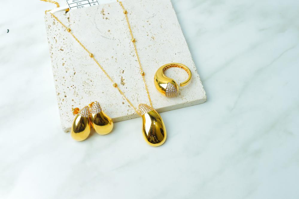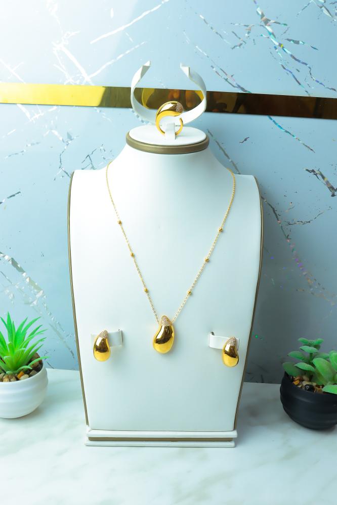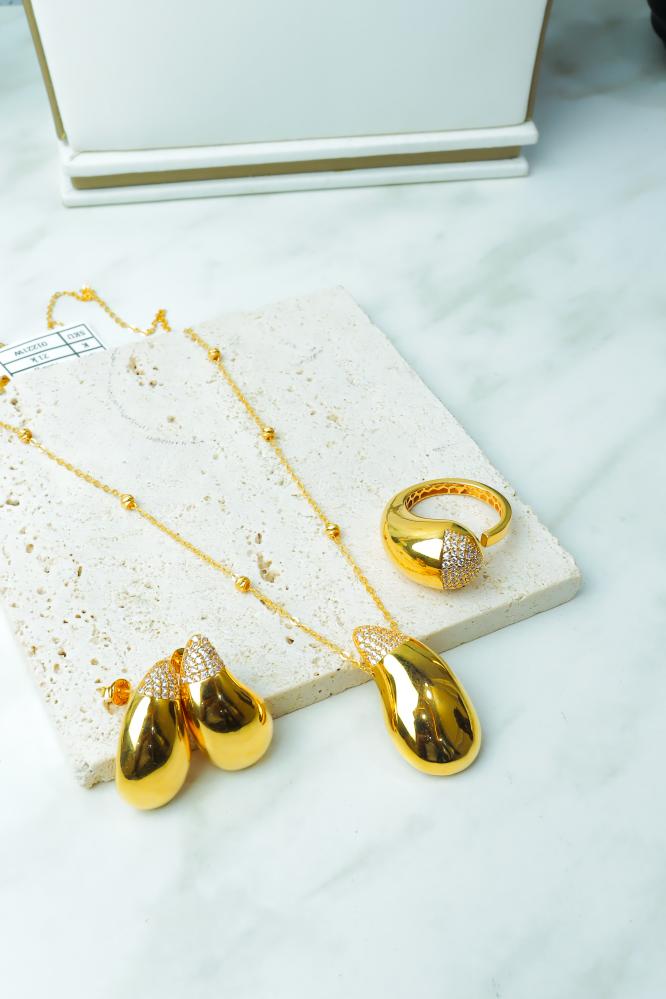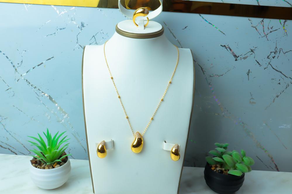 هذا الطقم هو الخيار الأمثل للمرأة التي تبحث عن الفخامة في أدق التفاصيل لتتألق في مناسباتها الخاصة بإطلالة لا تُنسى.