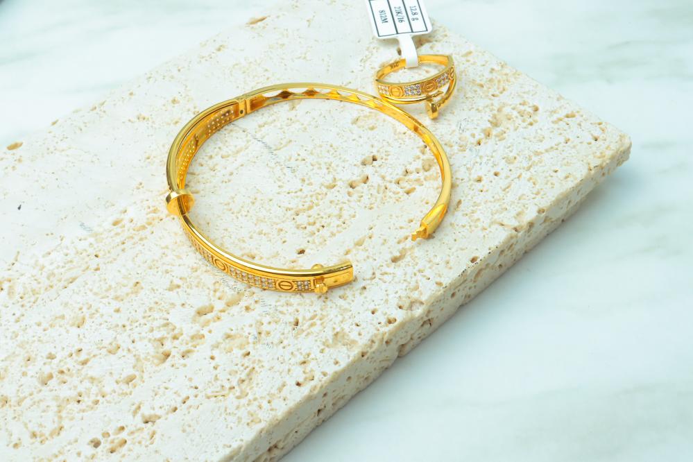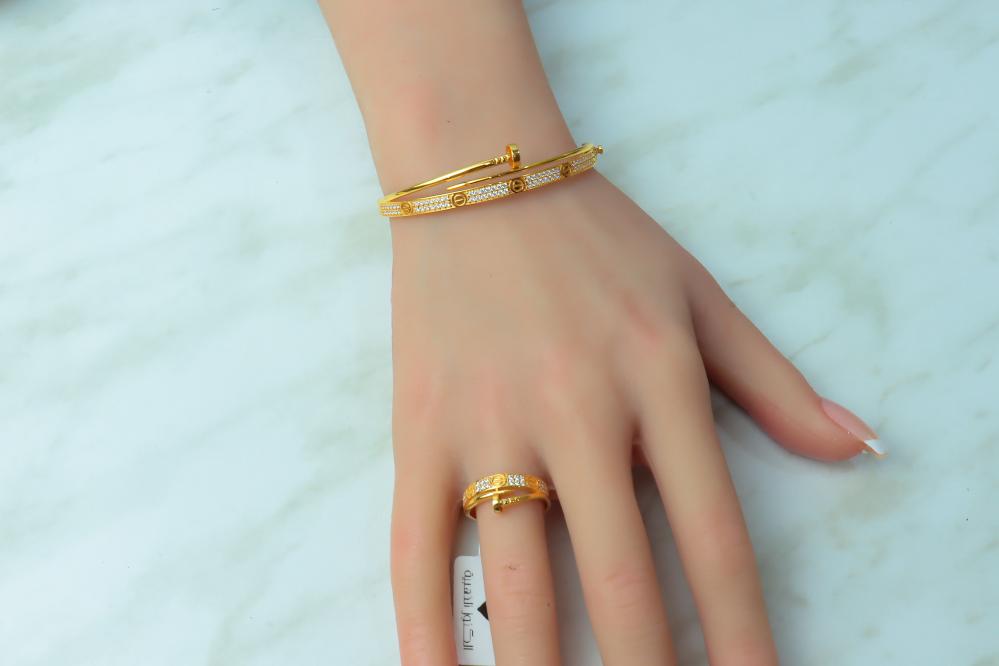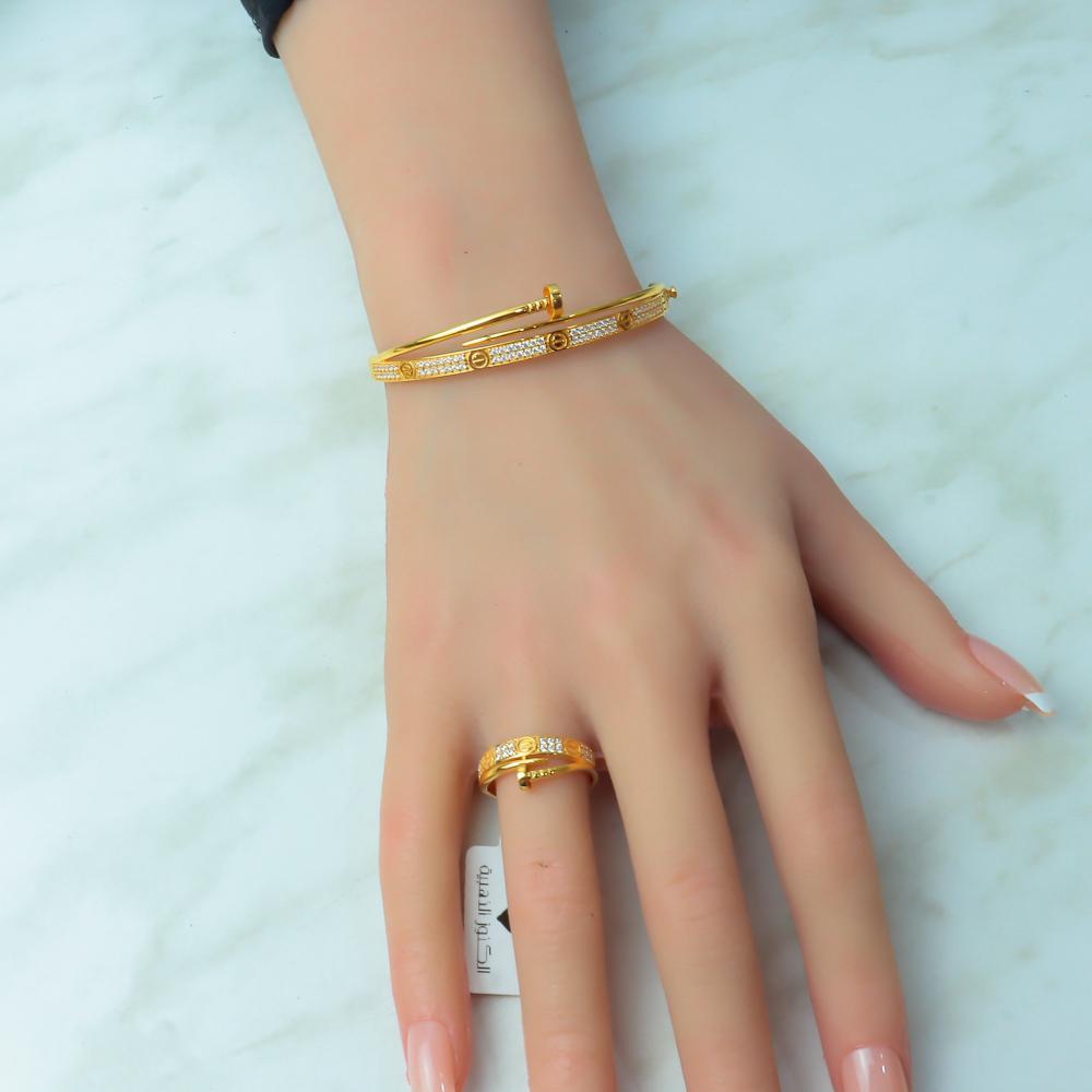 اقتني اسوارة مع خاتم ذهب عيار 21 شكل المسمار موديل كارتير , وتسوقي الآن من أجمل تشكيلة أساور ذهب عيار 21 و18، ناعمة تناسب كل مناسباتك. واستفيدي من عروضنا