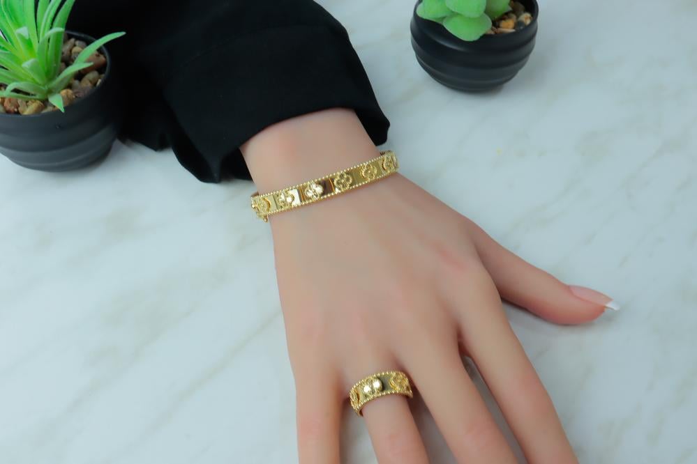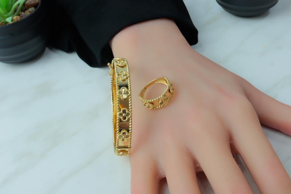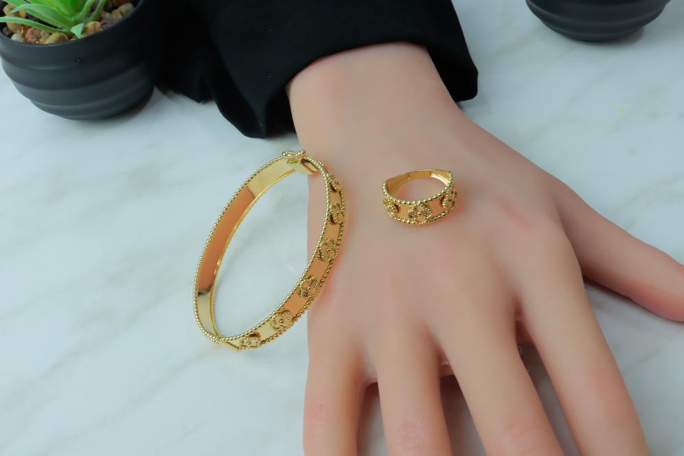 أسوارة فان كليف ذهب مع خاتم عيار 18 - لأطلالة فاخرة وأنيقة