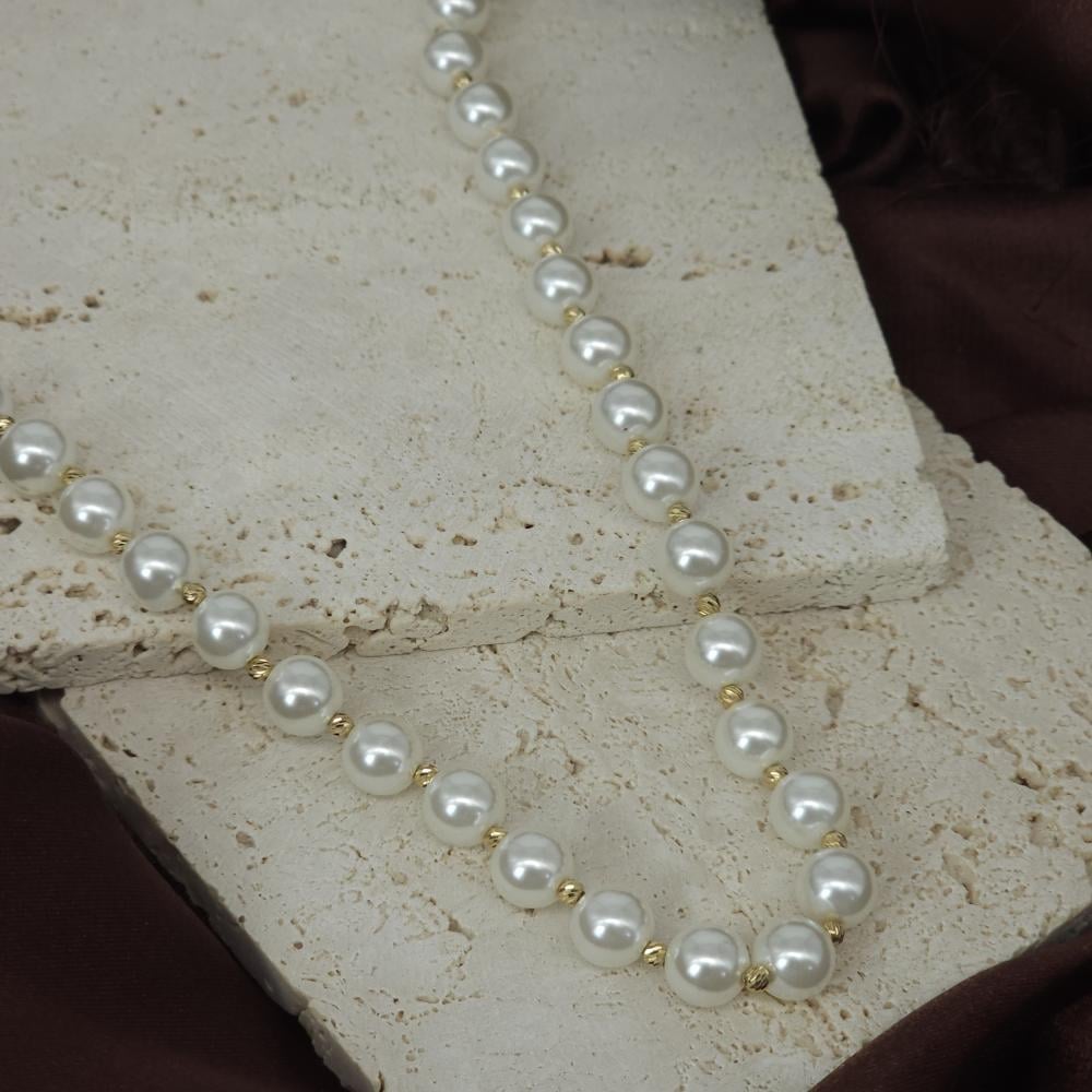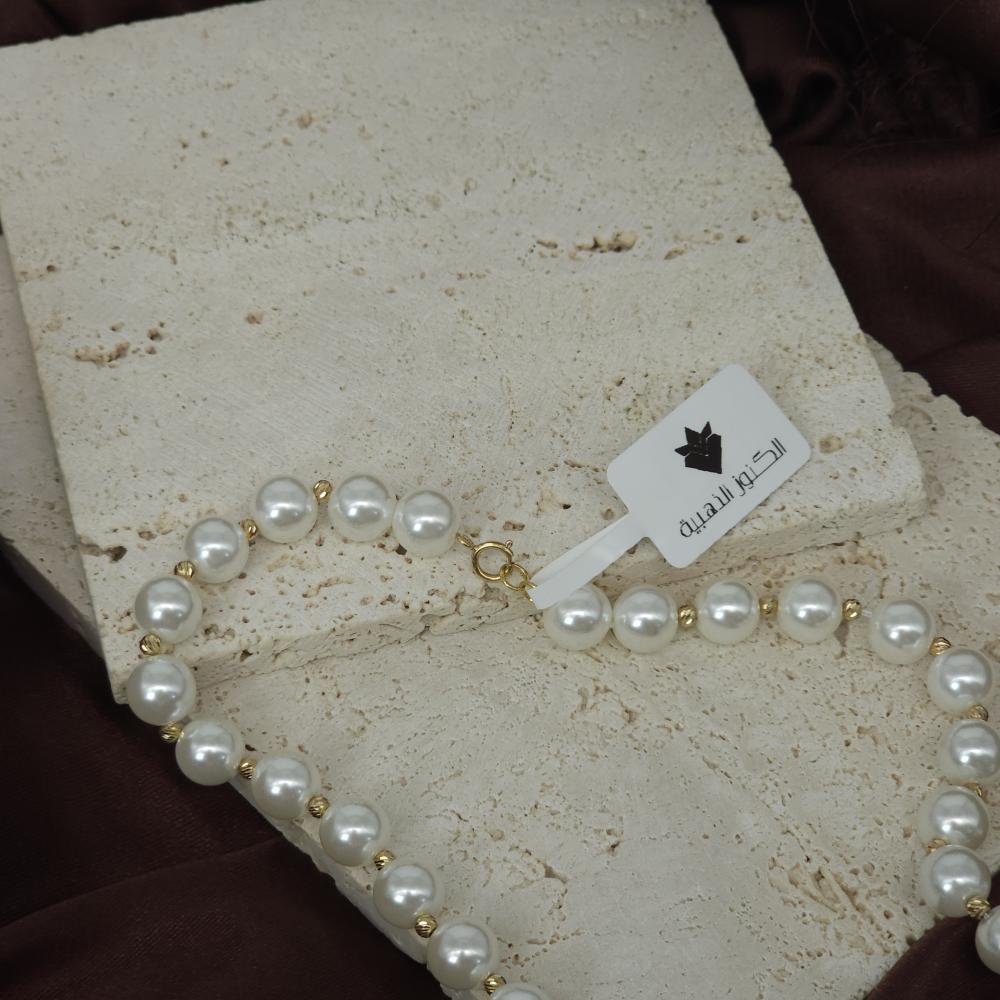 عقد حصري باللؤلؤ الزراعي الطبيعي بتصميم كرات الدوريكاء ذهب عيار 18 – وزن 2.01 جرام