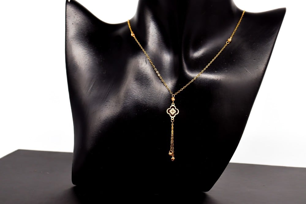 سلسال تصميم وردة الفان كليف عيار 21 بتصميمه الخيالي وبتفاصيله الجميله صنع ليعبر عن اطلاله تليق بك سيدتي ، اطلبيه الان واستمتعي بذهب يدوم لأجلك.