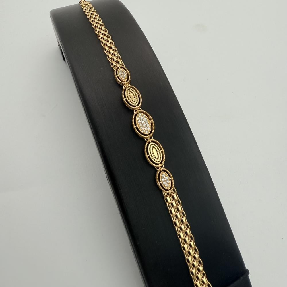 اسوارة ذهب الباولاء بلمسة الماسية عيار 21 وزن 11.09 جرام تعكس مزيجًا من الأناقة العصرية واللمسات الكلاسيكية الراقية.