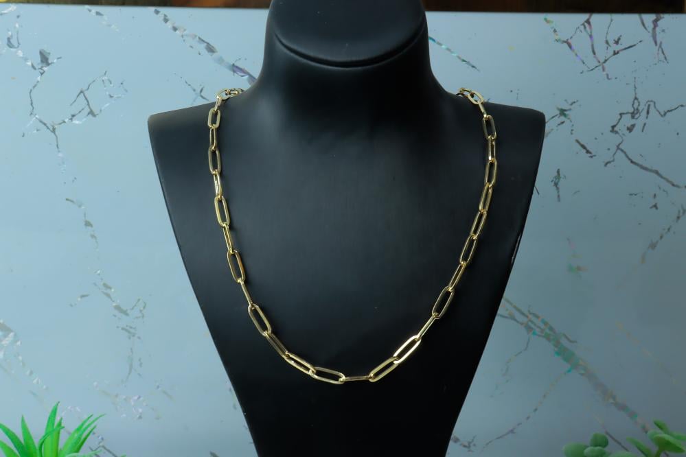 اجعلي إطلالتك تتألق مع سلسال الجنزير الذهبي الناعم عيار 18 بوزن 5.4 جرام، الذي يجمع بين الفخامة والبساطة ليكون الإضافة المثالية لمجموعتك من المجوهرات.