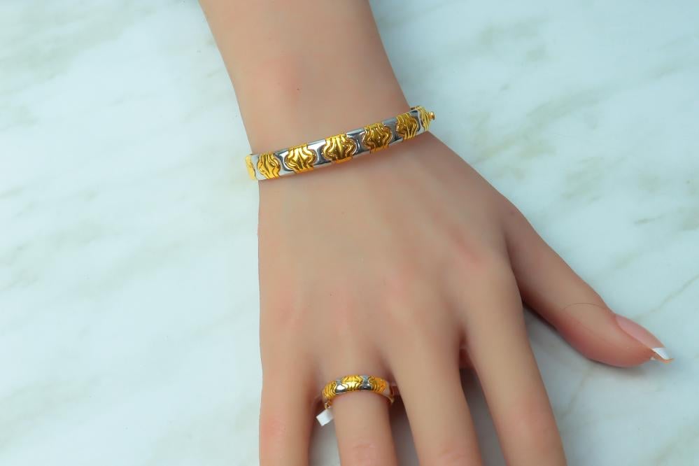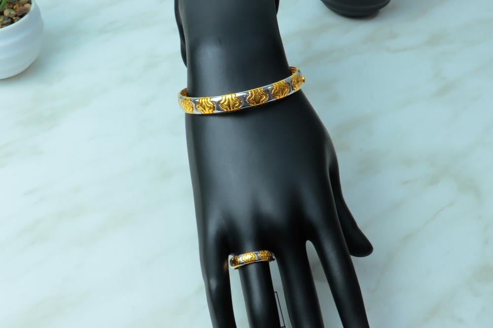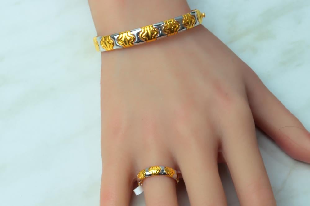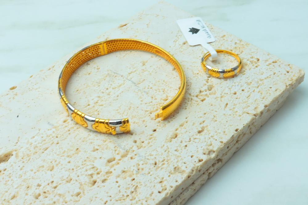 اقتني اسوارة مع خاتم ذهب عيار 21 بتصميم حصري انيق , وتسوقي الآن من أجمل تشكيلة أساور ذهب عيار 21 و18، ناعمة وفخمة تناسب كل مناسباتك. واستفيدي من عروضنا