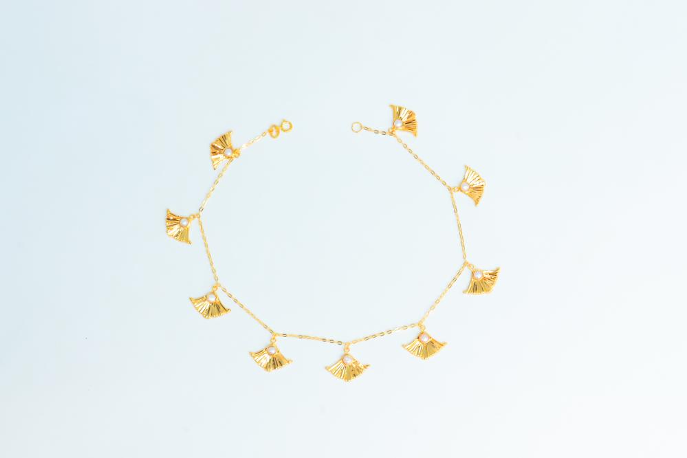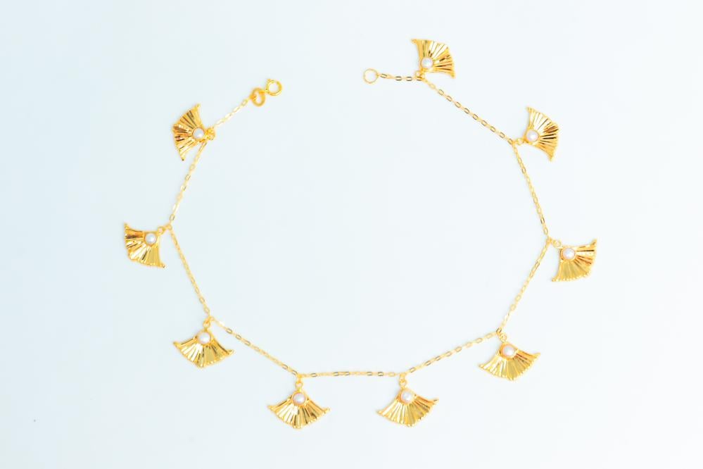 خلخال ذهب الصدفة مطعم بالولو الابيض عيار 21 وزن 3.6 جرام