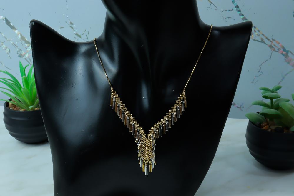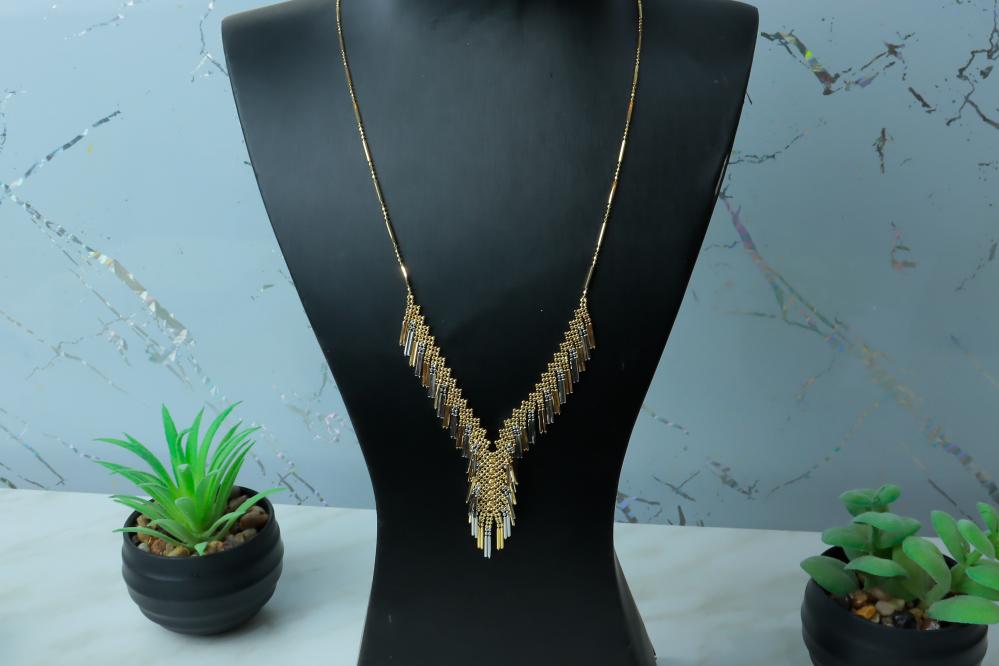 استثمري في قطعة ذهبية تضيف لمسة من الفخامة والدقة إلى إطلالتك. لا تفوتي فرصة التألق مع عقد التصميم الياباني الفريد والمتميز.