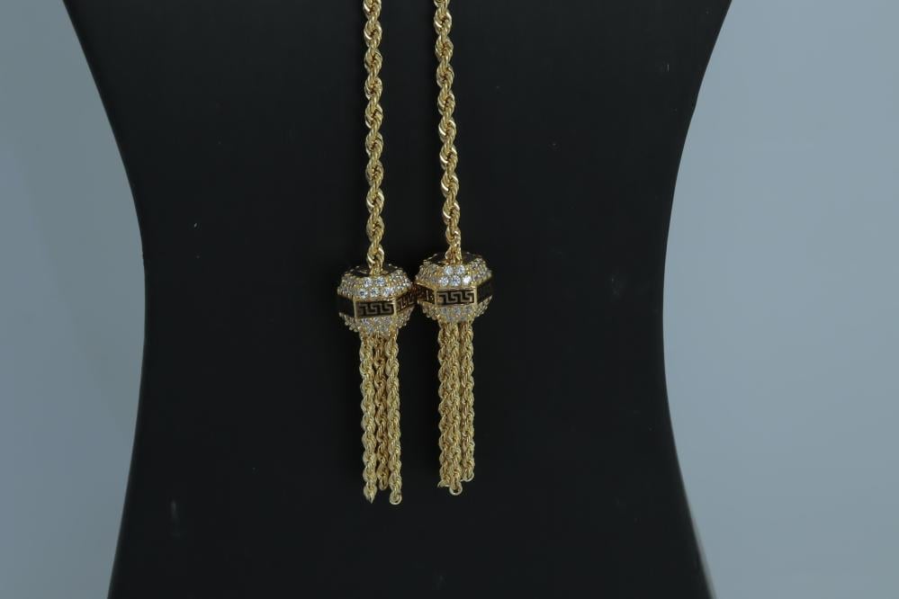 سبحة المبروم بتصميمها الجديد كليا المطعمة بلون الميناء الاسود بتصميم الماسي عيار 18 مزودة بكره السحب التي تسمح لك بالتكبير والتصغير من طول 40 سم الى طول 75 سم