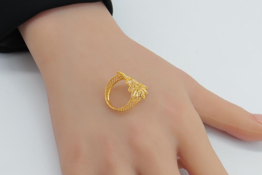 خاتم ذهب نسائي عيار 21 بتصميم عالي الدقة وزن 1.8 جرام