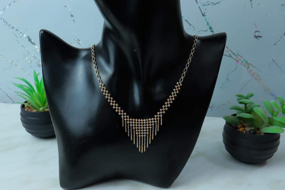اجعلي إطلالتك تتألق مع سلسال الذهب الجديد بتصميم ياباني أنيق عيار 18 بوزن 7.2 جرام، الذي يجمع بين الفخامة والتألق ليكون الإضافة المثالية لمجموعتك من المجوهرات.
