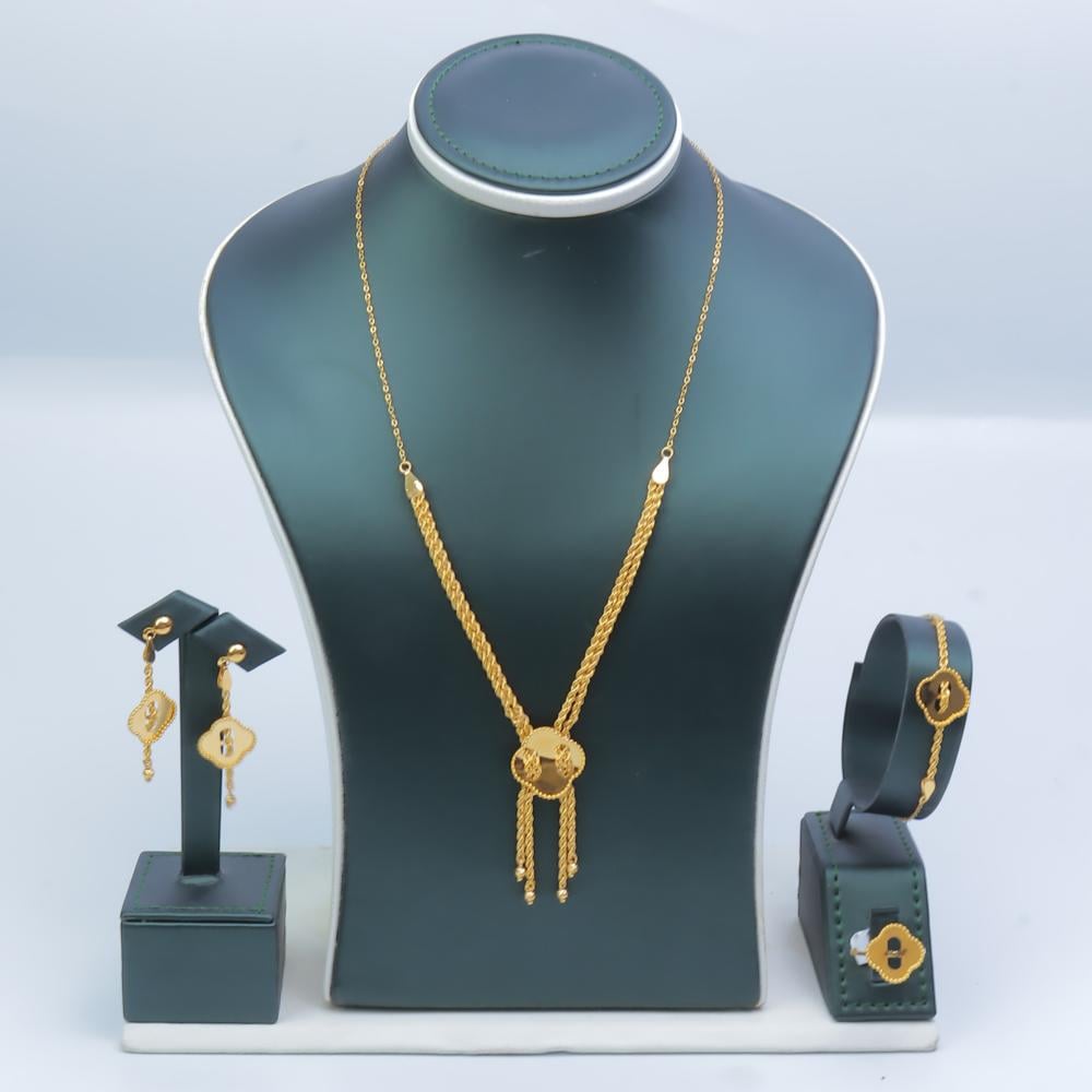 يأتي هذا الطقم الذهبي بتصميم مبروم فاخر يعكس الأناقة الكلاسيكية في أبهى صورها.