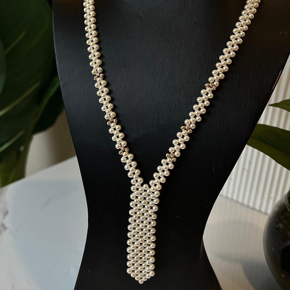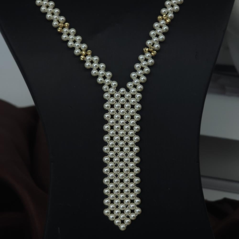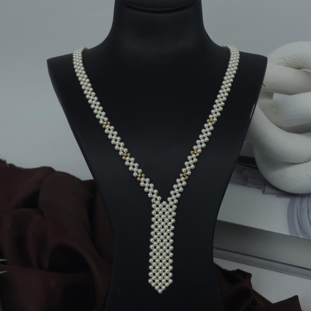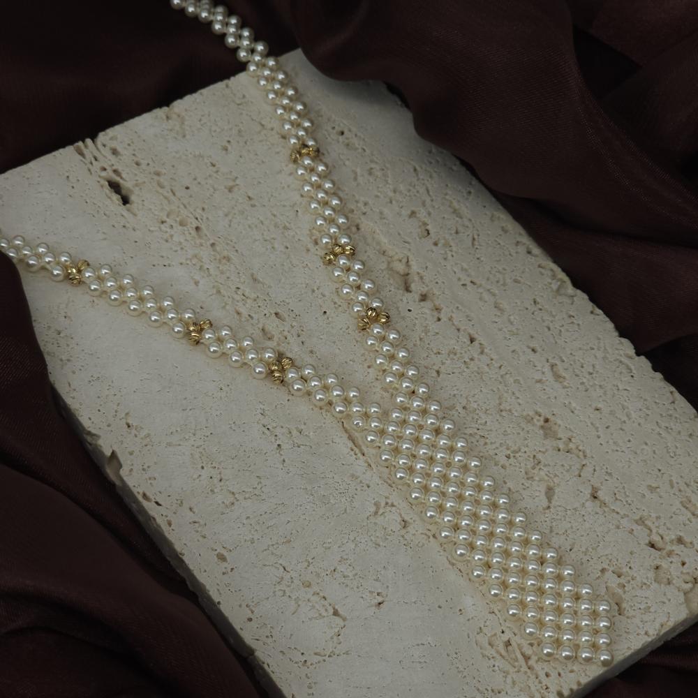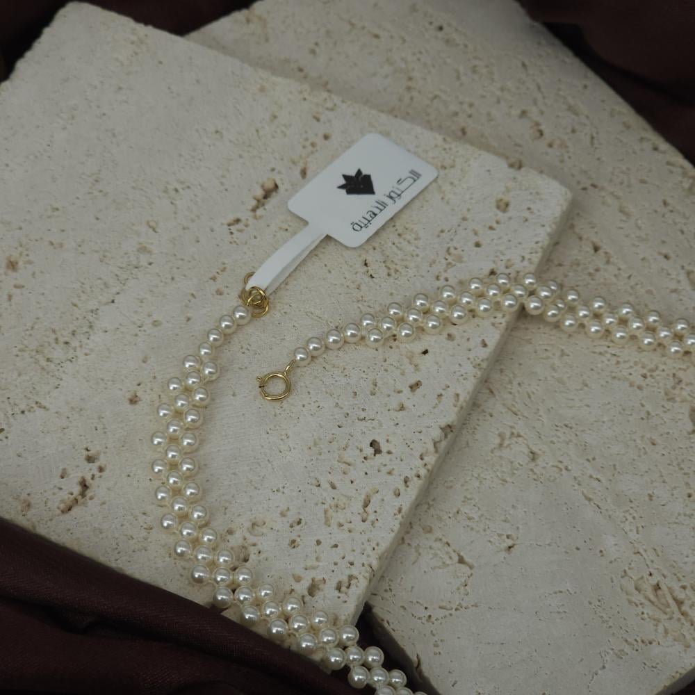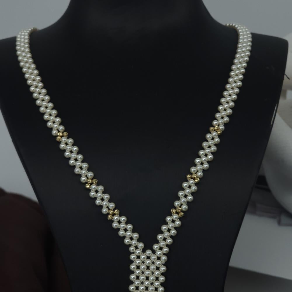 عقد مميز لؤلؤ زراعي طبيعي بتصميم الكرات الذهبية ذهب عيار 18