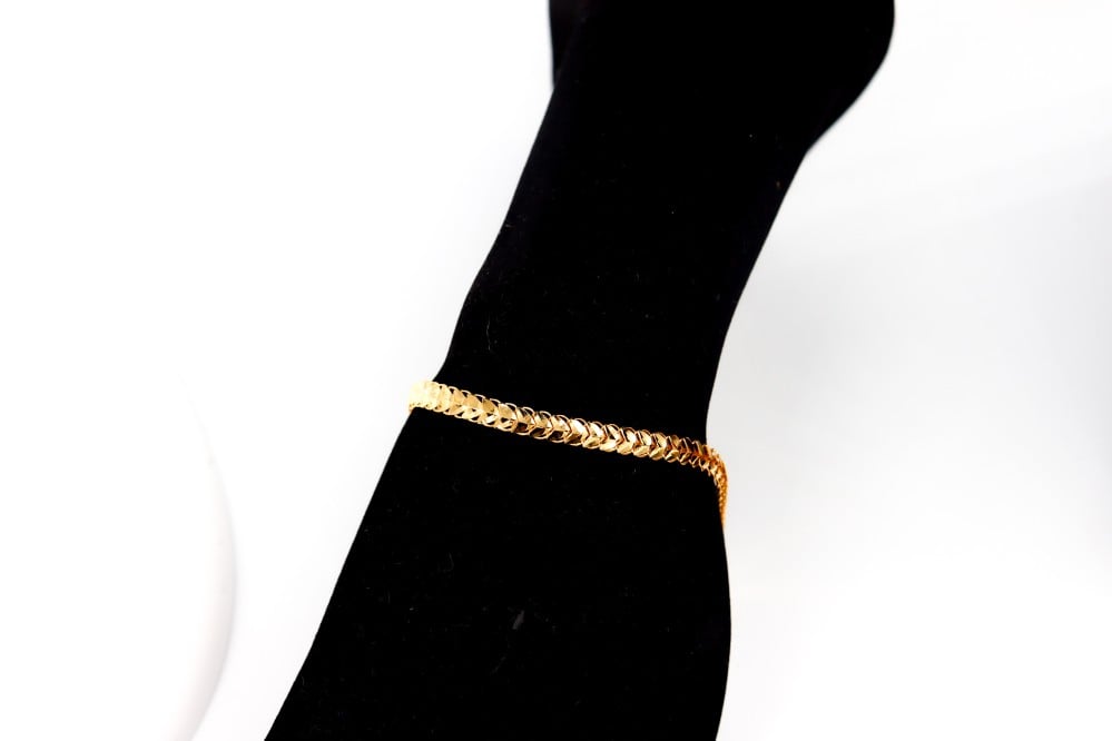 سوارة غصن الزيتون عيار 21 بتصميمها الخيالي وبتفاصيلها الجميله صنعت لتعبر عن اطلاله تليق بك سيدتي ، اطلبيها الان واستمتعي بذهب يدوم لأجلك.