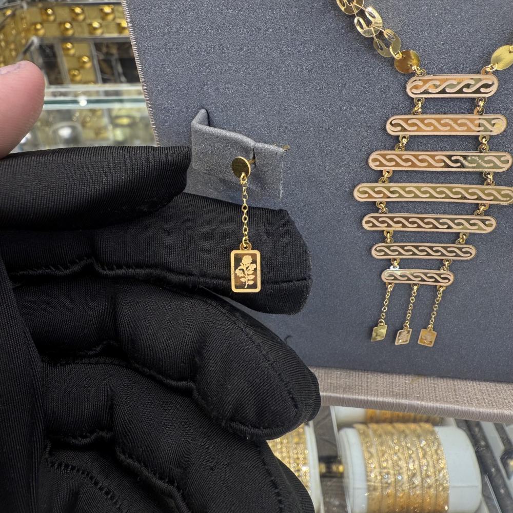 طقم ذهب مع المخنق ناعم عيار 21 وزن 8.5 جرام
