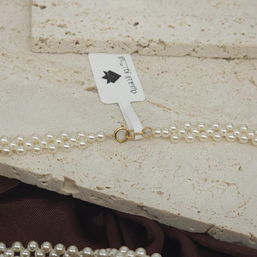 عقدحصري بالؤلؤ الزراعي الطبيعي المميز بكرات ذهبية عيار 18