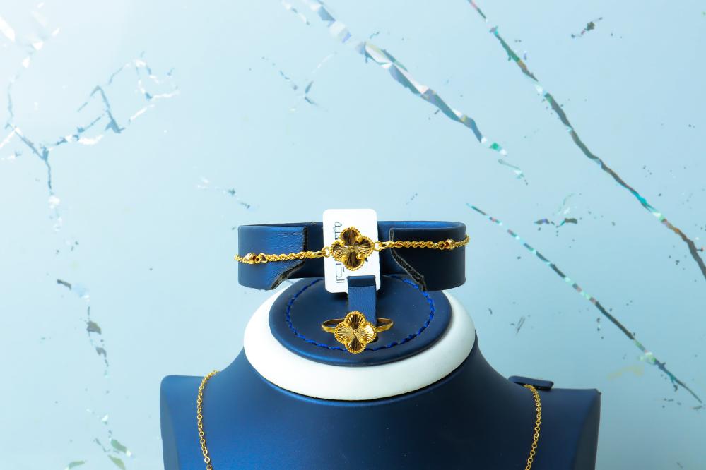 طقم الورده النازل بحبات الدوريكاء ذهب عيار 21 وزن 8.3 جرام