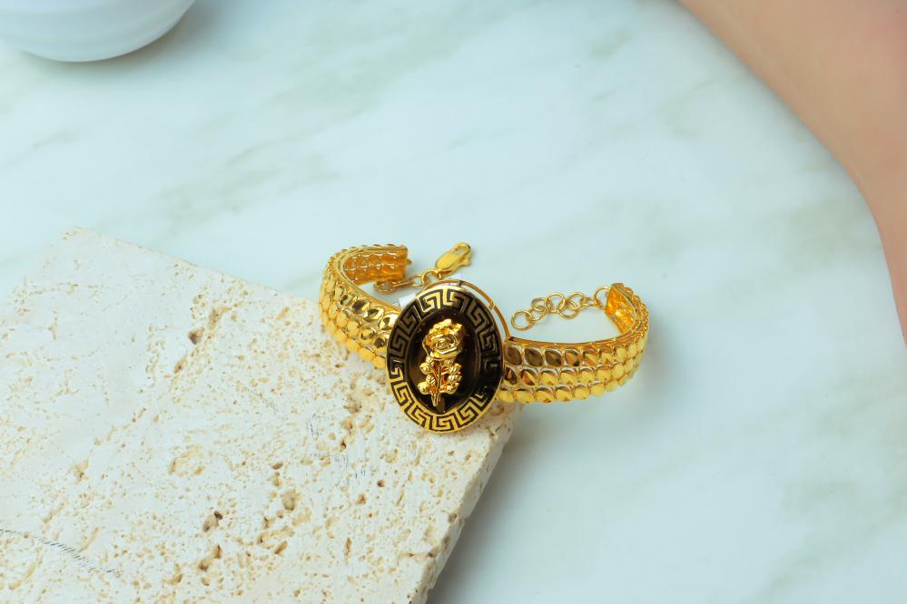 - التصميم: تصميم بيضاوي فاخر بنقش فرزاتشي الذي يجمع بين الأناقة الإيطالية واللمسات الفاخرة. تتميز الاسوارة والخاتم بالتفاصيل المتقنة التي تحمل نقش فرزاتشي الشهير، مما يضفي مظهرًا راقيًا وجريئًا. هذه القطعة الاستثنائية مثالية لكل امرأة تبحث عن التميز والفخامة في إطلالتها.