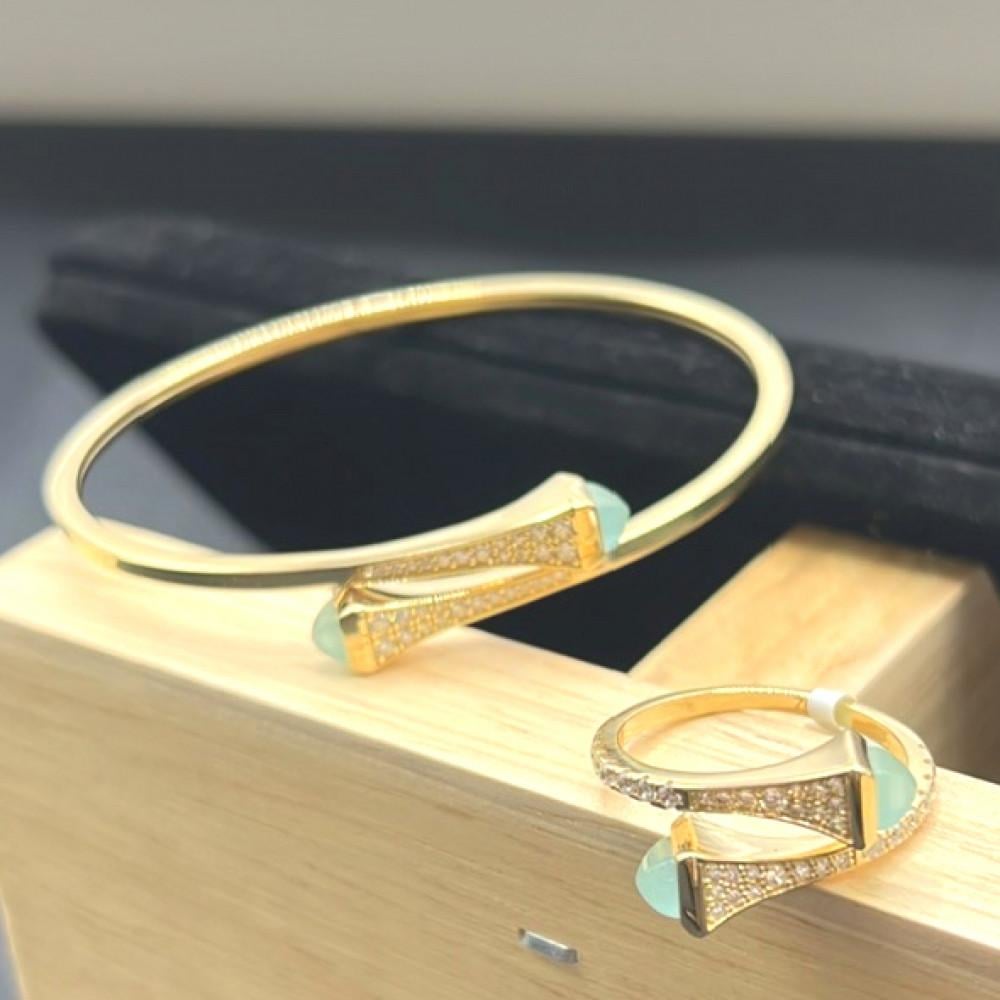 ✨ جربي روعة التميز مع اسوارة وخاتم ذهب عيار 18 تصميم مارلي ألماسي بلون فيروزي، واكتشفي المزيد من اساور ذهب عيار 18 بتصاميم راقية وألوان عصرية تناسب جميع المناسبات.