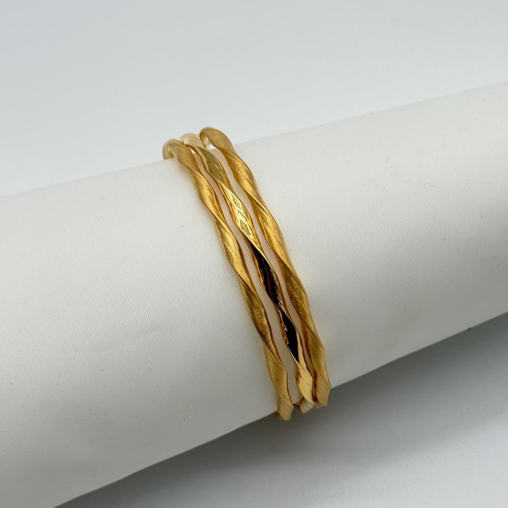 غوايش ذهب ساده عيار 21 بتصميم ناعم وخطوط هادئة تعكس بساطة راقية ولمعانًا خفيفًا ينسجم مع الإطلالات اليومية ويبرز الذوق الهادئ بدون مبالغة.