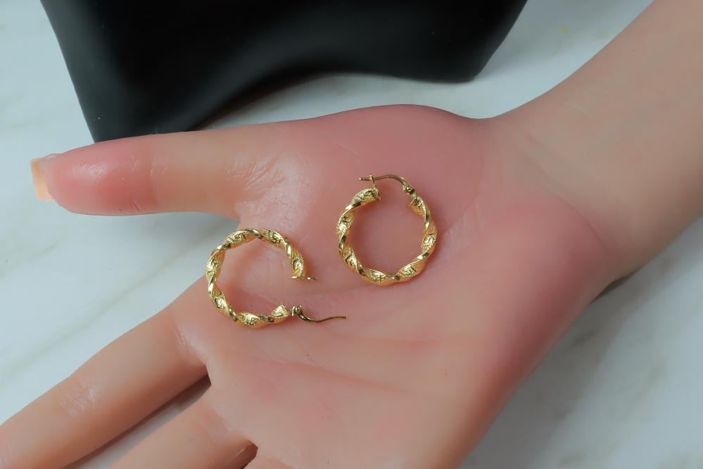 حلق ذهب ايطالي بتصميم المبروم عيار 18 وزن 1.7 جرام