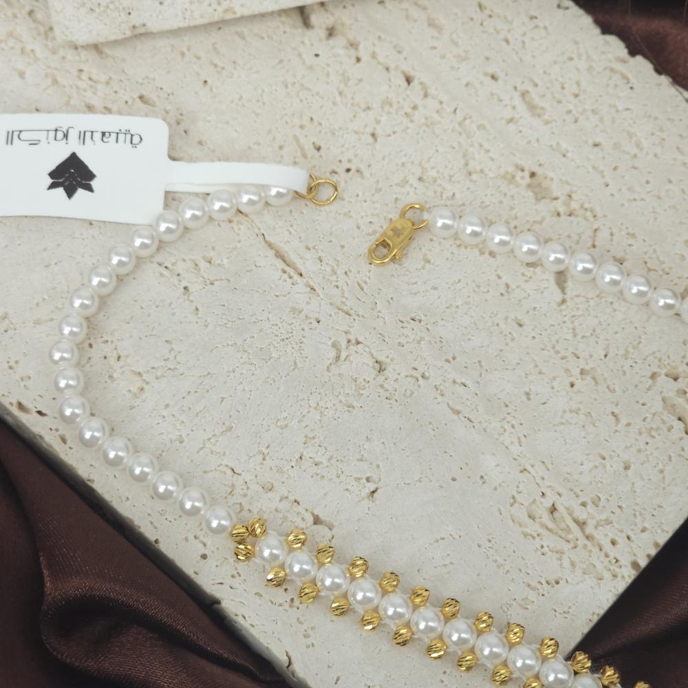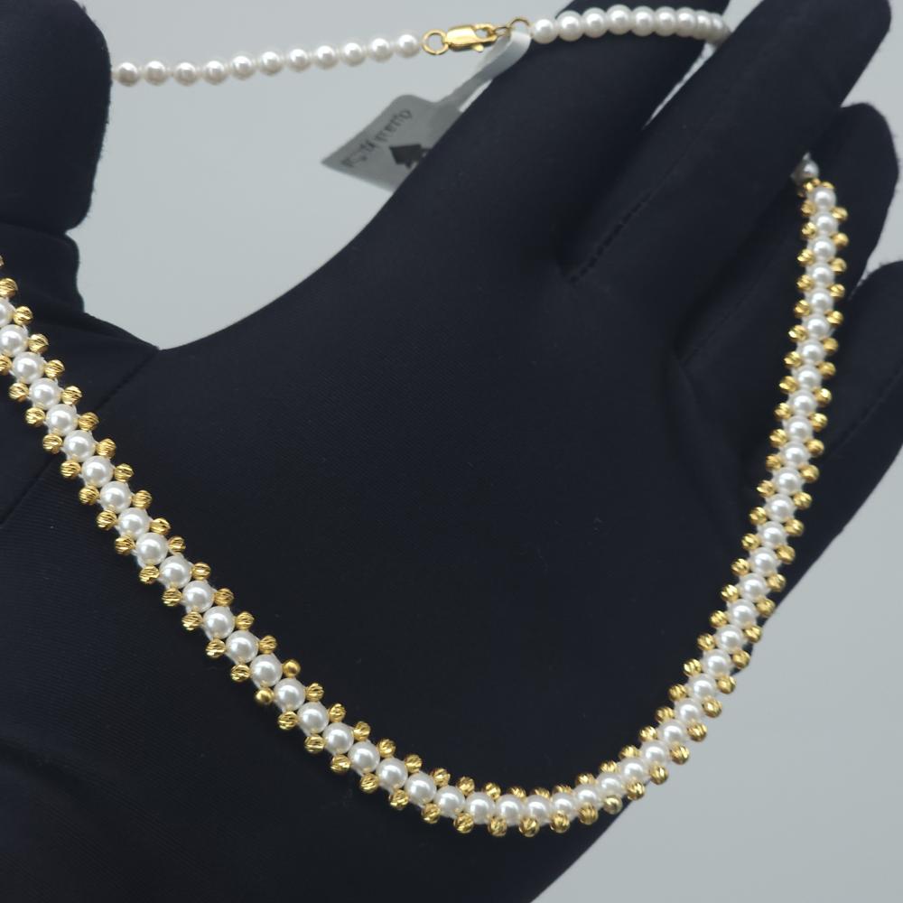 عقد لؤلؤ زراعي طبيعي مزين بحبات ذهبية عيار 21 – وزن 6.99 جرام