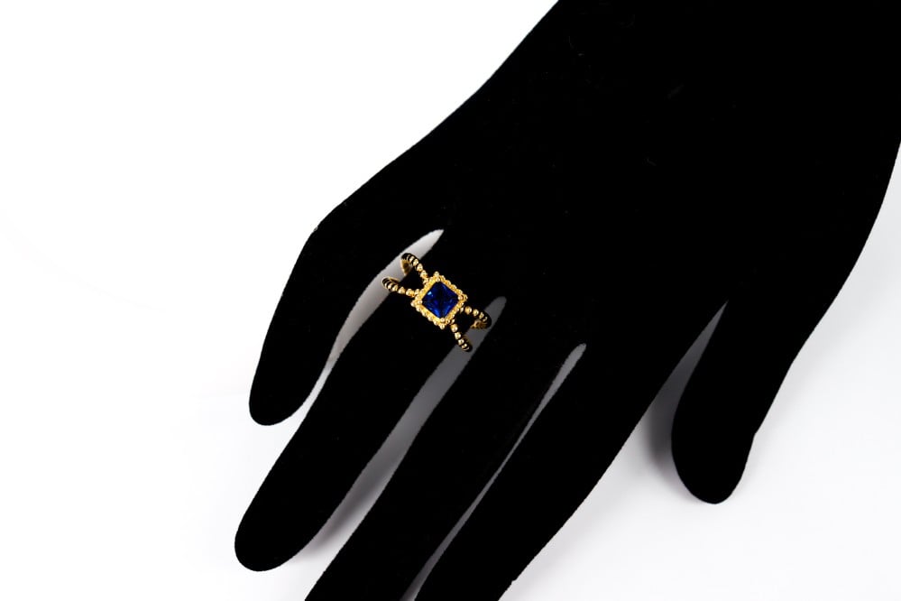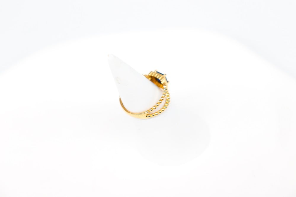 خاتم ذهب عيار 18 بوزن 2.9 جرام، تصميمه يضفي لمسة من التألق والأناقة على يديك. حيث يجمع بين بريق الماس ولون الأزرق الجذاب لإبراز جماله. الوزن المثالي يضمن لك ارتداء مريح وجاذبية لا تضاهى.