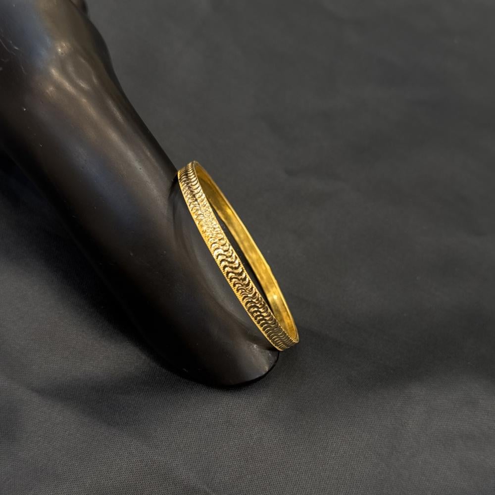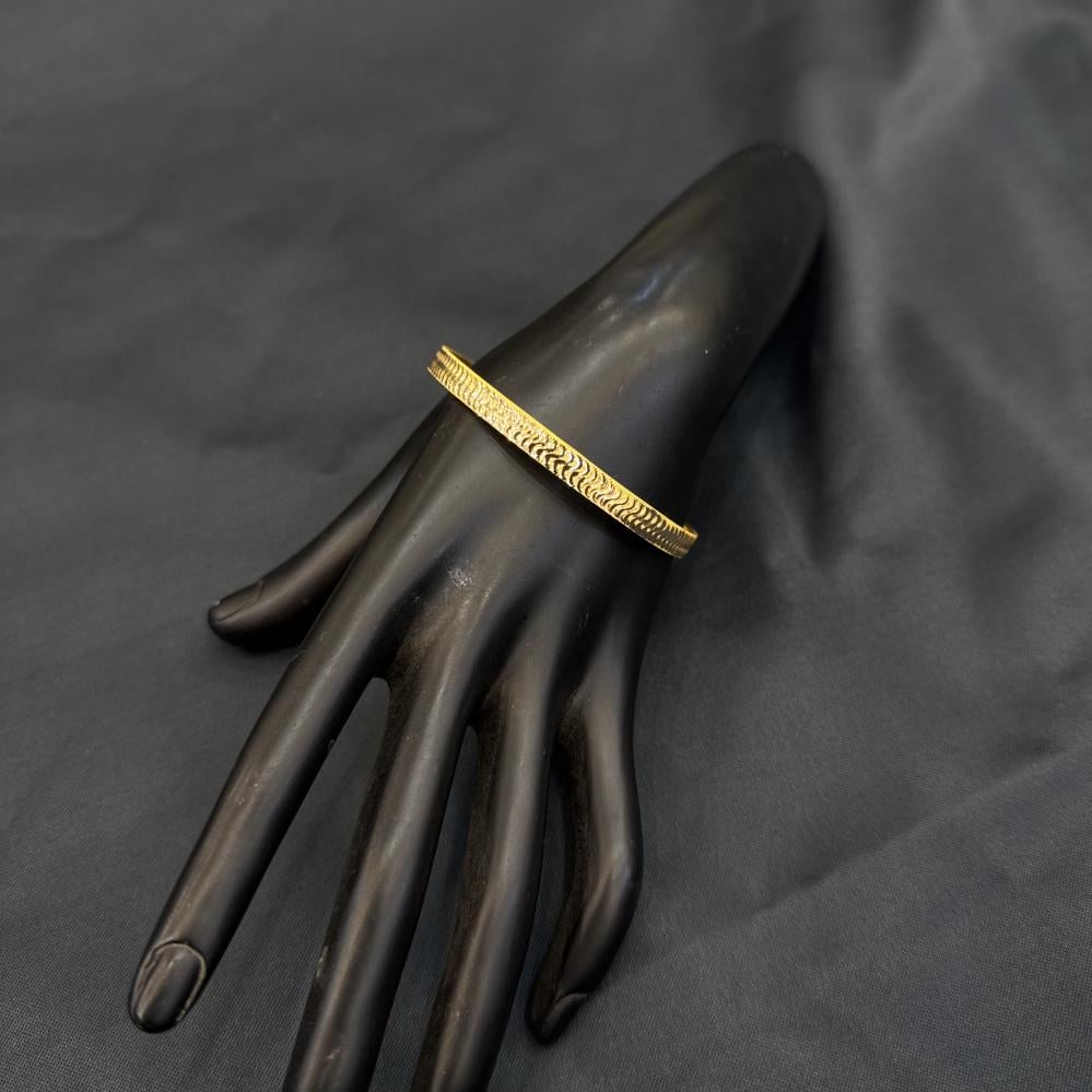 غوايش المنقوشة ذهب عيار 21 بوزن 4.9 جرام، تجمع بين الفخامة والأناقة بلمسة مميزة. تصميمها الراقي يعكس جودة عالية ويضفي لمسة من التميز على معصمك، مما يجعلها خياراً مثالياً للمناسبات الخاصة.