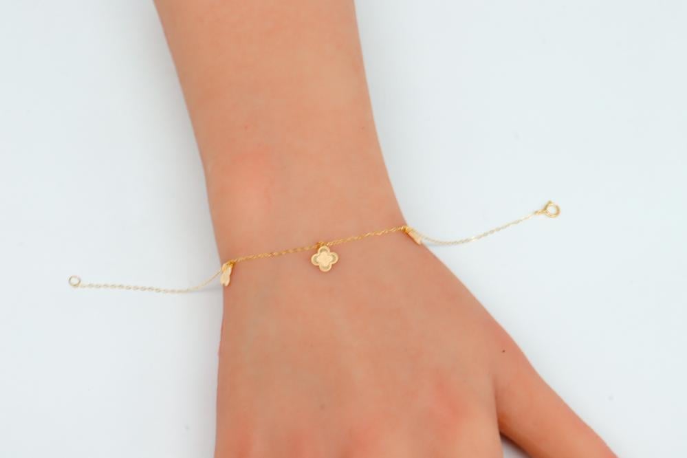 سوارة ذهب تصميم وردة الفان كليف نواعم عيار 18 وزن 0,4 جرام احصلي على هذه السوارة الراقية اليوم وتمتعي بإطلالة مميزة ومشرقة في كل مناسبة.