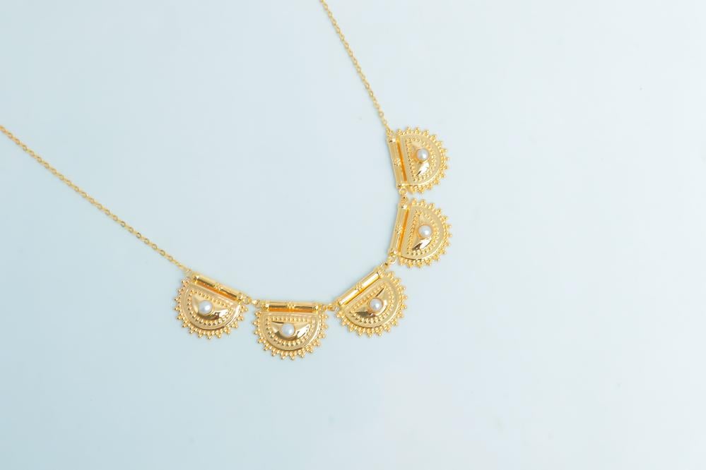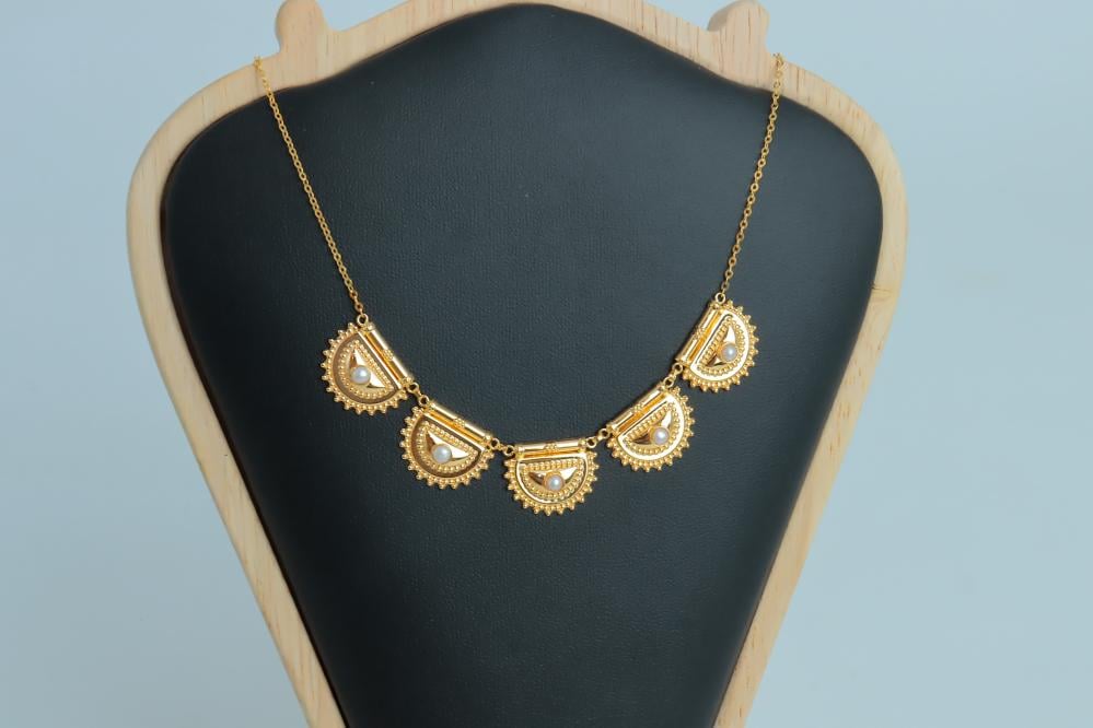 سلسال ذهب الرمش بحريني مطعم بحبات الولو الابيض عيار 21 وزن 4.75 جرام