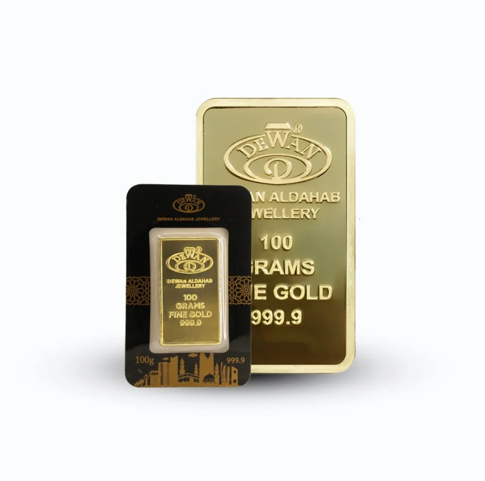 سبيكة ذهب وزن 100 جرام وعيار 24 بنقاء 999.9 ، بتصميم أنيق ، تمنحك لمسة فاخرة تجمع بين الجمال والادخار في آنٍ واحد.