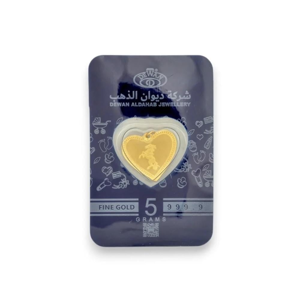 سبيكة بتعليقة ديوان الذهب السعودية الجديدة تُعتبر من أفخم السبائك الذهبية المتاحة في السعودية. بفضل نقائها العالي بنسبة 999.9 تعد سبيكة ديوان مثالية للإهداء والادخار، لما تتمتع به من جودة استثنائية وتصميم أنيق على شكل قلب.♦️