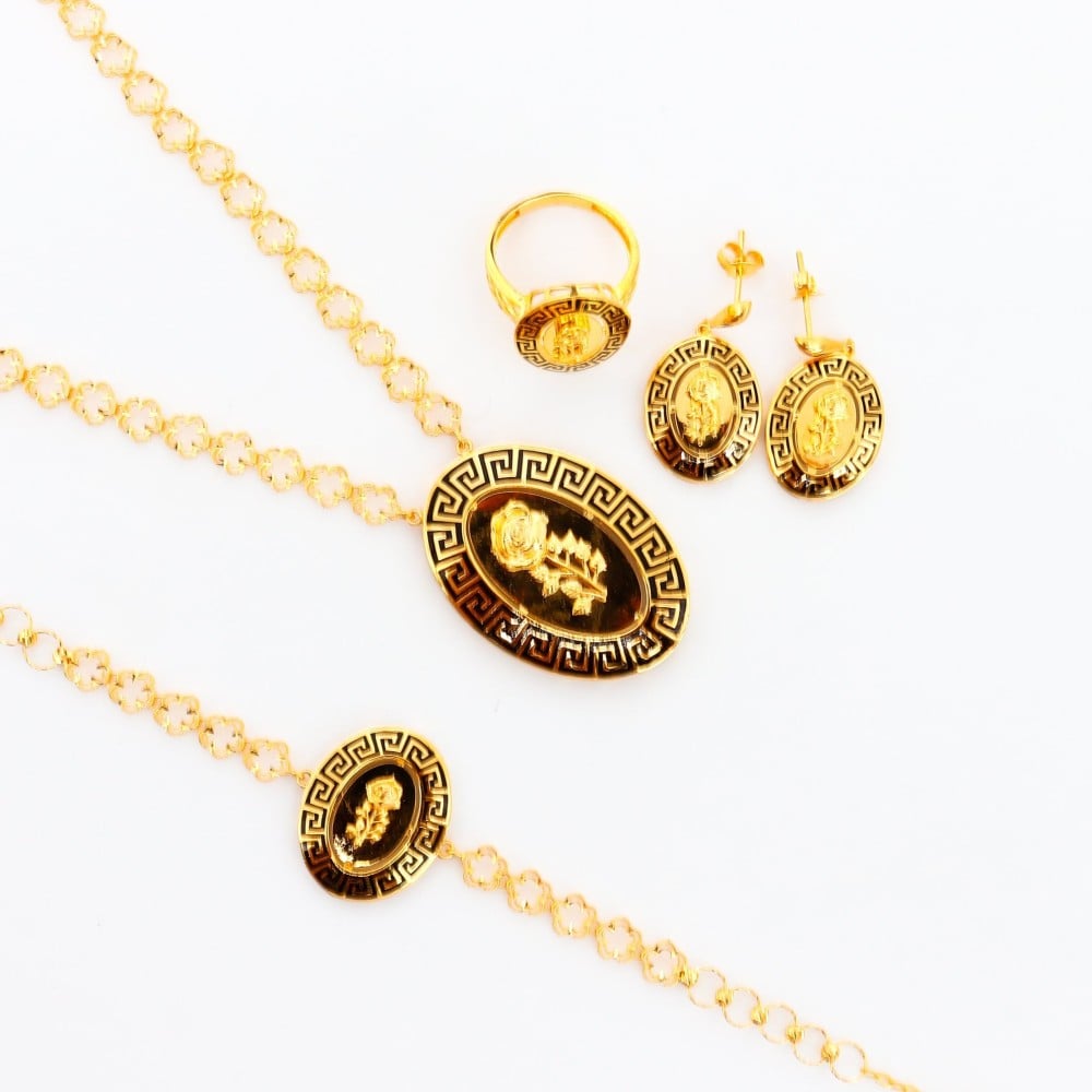 تميزي بطقم الذهب الملكي بتصميم سبيكة الوردة عيار 21 بوزن 27.1 جرام، وخلّي إطلالتك دايمًا أنيقة وجذابة ومليئة بالفخامة.