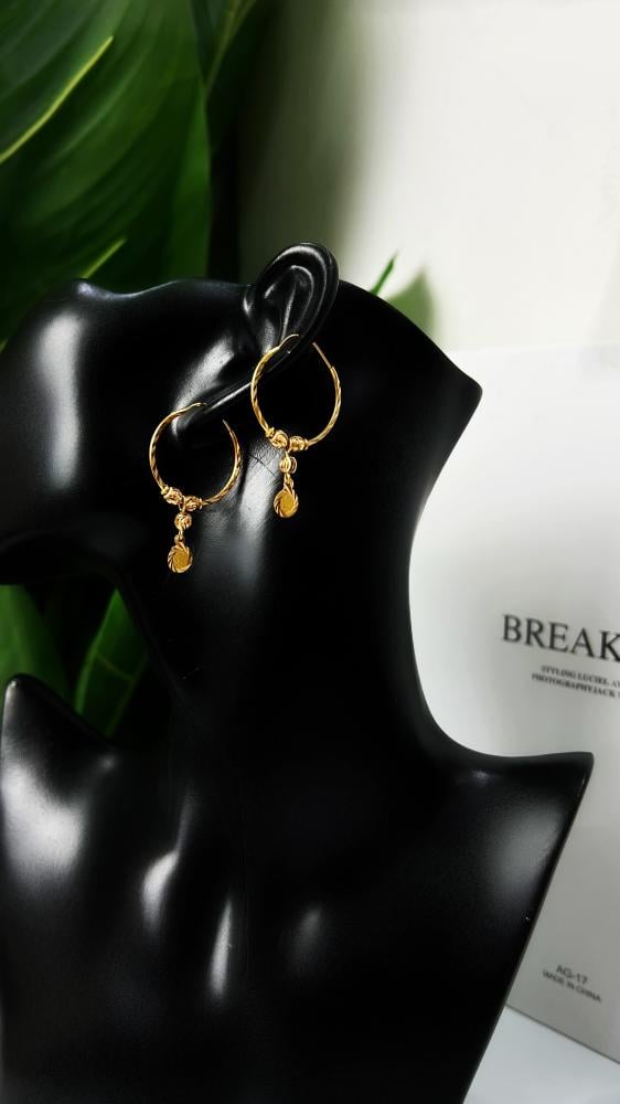 أضيفي لمسة من الأناقة لإطلالتك مع حلق مصنوع من ذهب عيار 21 بوزن 3.6 جرام. بتصميمه الدائري الكلاسيكي والبسيط، يمنحك الحلق لمسة جذابة تناسب جميع المناسبات، من الاجتماعات اليومية إلى السهرات المميزة. يعكس لمعانه الرقيق وأسلوبه المتقن جمالك الطبيعي ويضفي بريقًا خاصًا يكمل إطلالتك بأسلوب ناعم ومبهر.