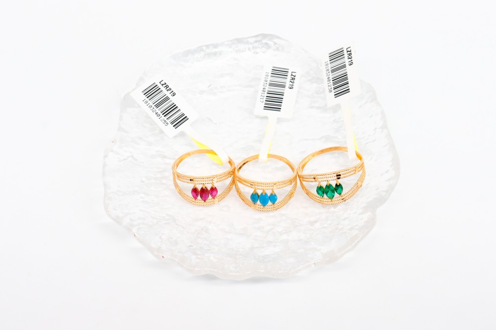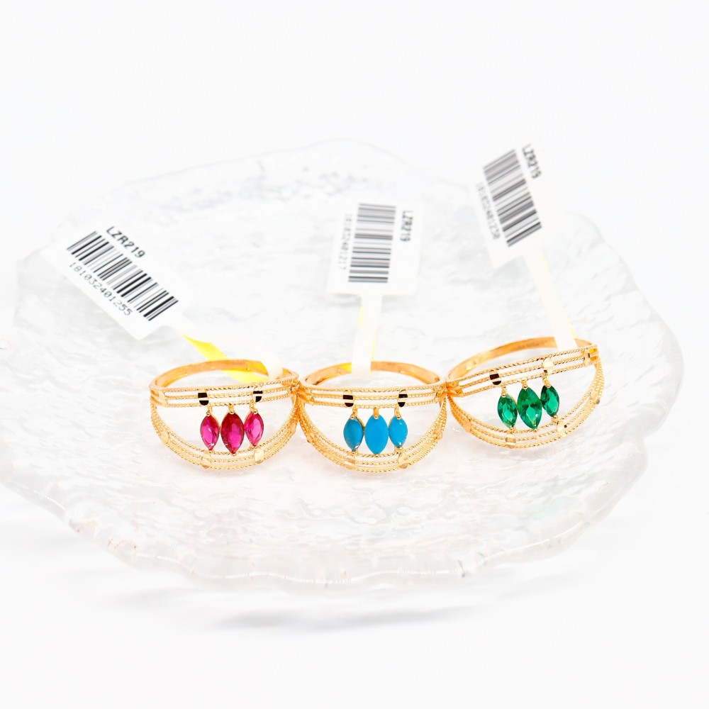 خاتم ثري ستون متوفر بالوان مختلفة عيار 21