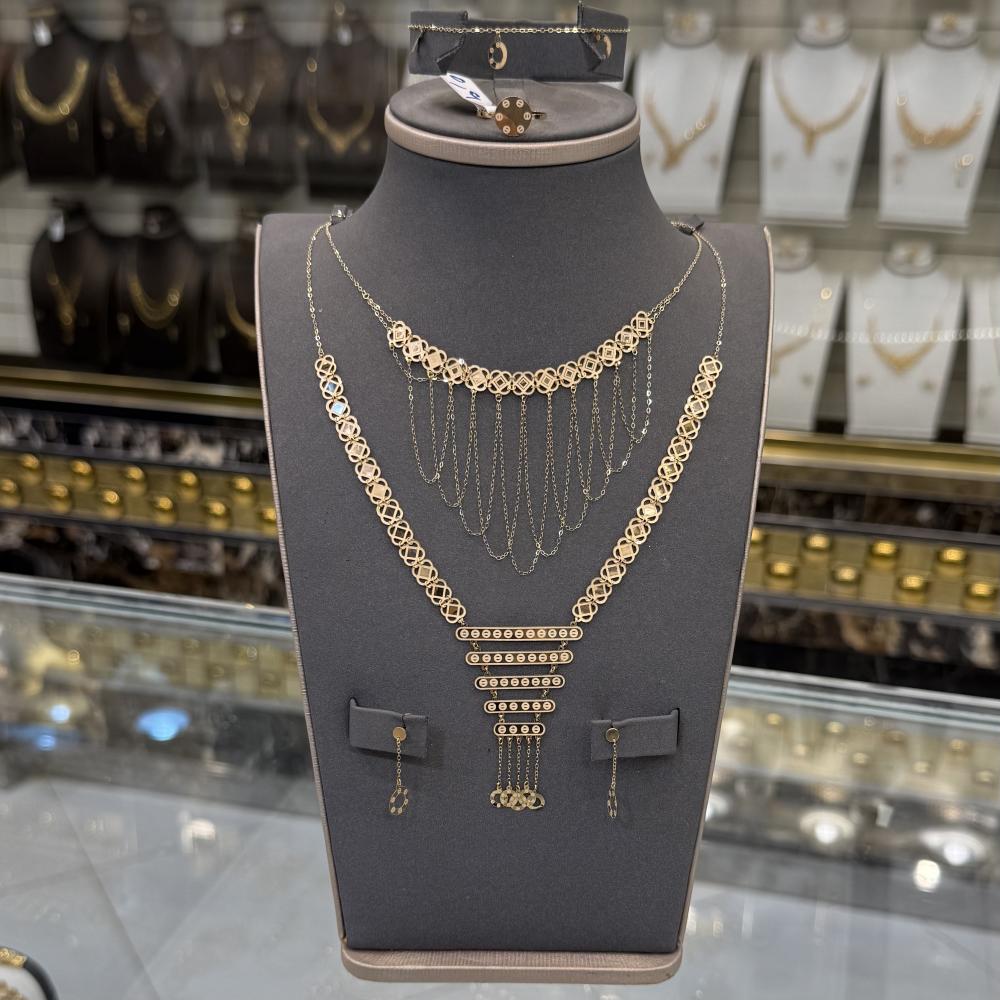 طقم ذهب مع المخنق ناعم عيار 18 وزن 5.9 جرام