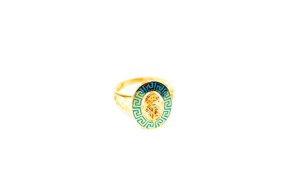خاتم ذهب تصميم الوردة البيضاوية باللون التيفاني عيار 21 بتصميمه الخيالي وبتفاصيله الجميله صنع ليعبر عن اطلاله تليق بك سيدتي ، اطلبية الان واستمتعي بذهب يدوم لأجلك.
