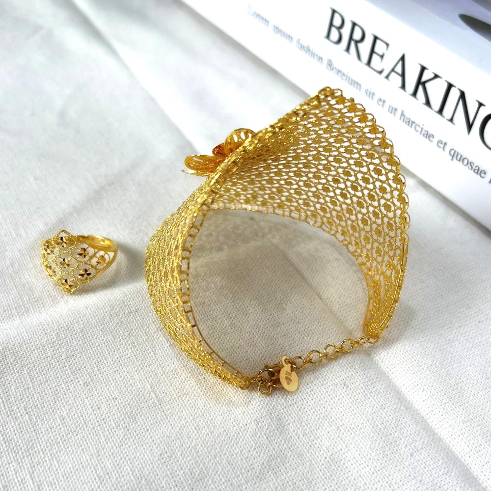 تميزي بإطلالة تخطف الأنظار مع اسوارة وخاتم ذهب عيار 21 موديل دراما بوزن 26.55 جرام، بتصميم الزهرة الأنيق الذي يضفي لمسة من الجمال والأنوثة. يتميز الطقم بتفاصيله الفاخرة التي تعكس إبداعًا فنيًا وتمنحك حضورًا لافتًا. سواء كنتِ تستعدين لمناسبة خاصة أو تودين إضفاء لمسة راقية على إطلالتك اليومية، هذا الطقم سيكون خيارك المثالي لإبراز ذوقك الرفيع."