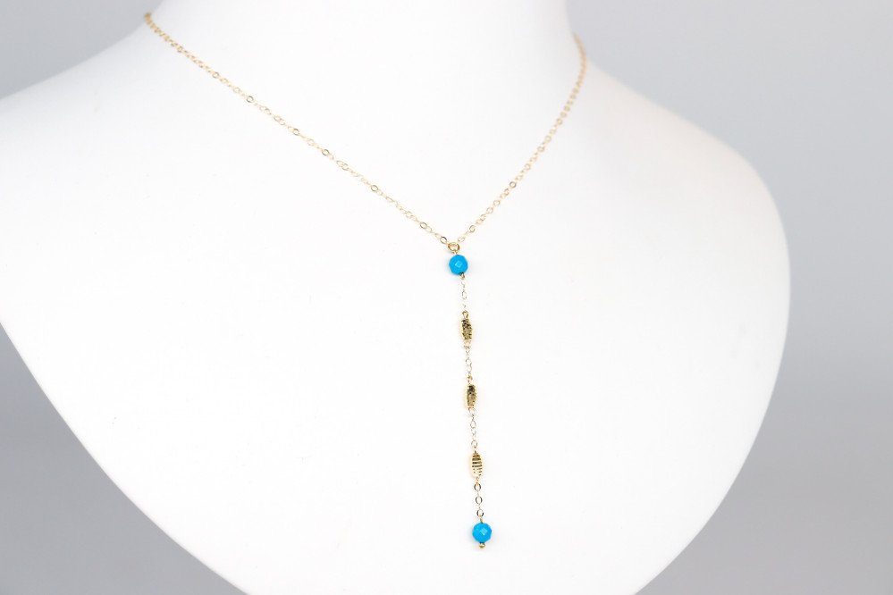 سلسال ذهب فيروزي عيار 18 بتصميمه الخيالي وبتفاصيله الجميله صنع ليعبر عن اطلاله تليق بك سيدتي ، اطلبية الان واستمتعي بذهب يدوم لأجلك