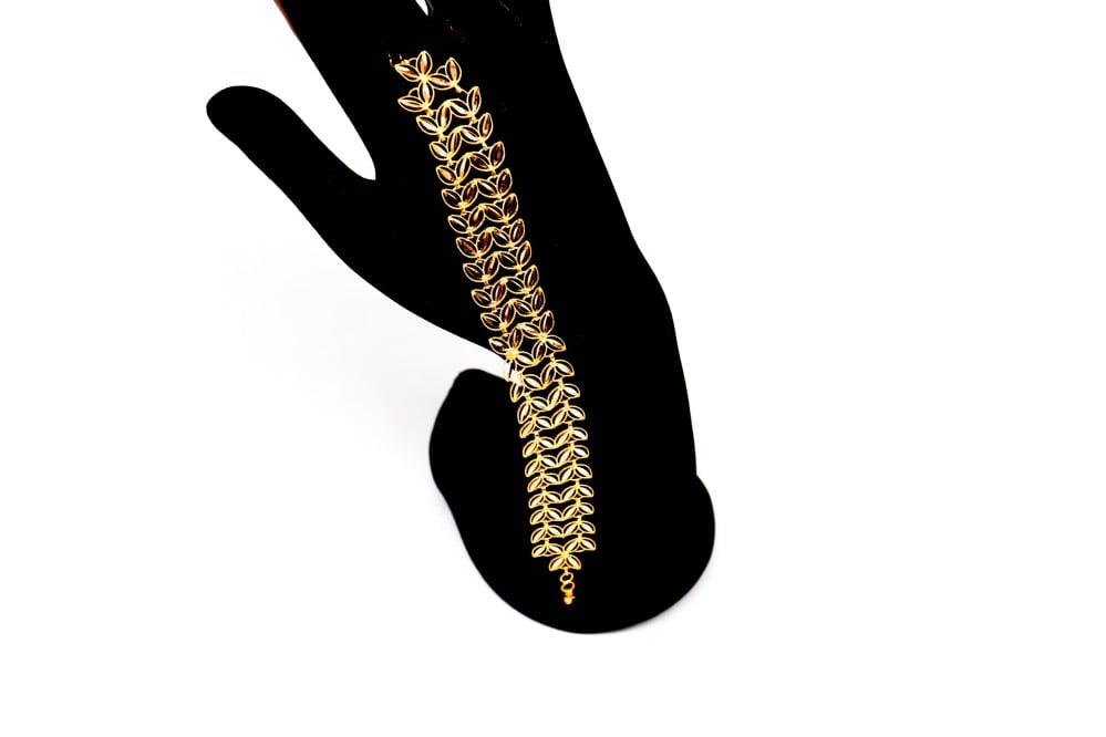 سوارة غصن الزيتون عيار 21 بتصميمها الخيالي وبتفاصيلها الجميله صنعت لتعبر عن اطلاله تليق بك سيدتي ، اطلبيها الان واستمتعي بذهب يدوم لأجلك.