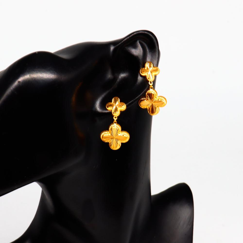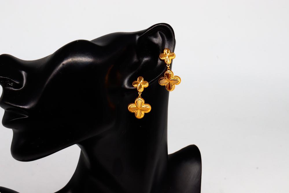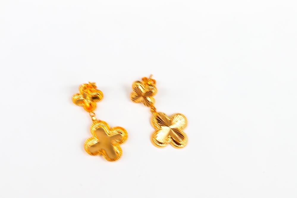 حلق ذهب تصميم وردة الفان كليف عيار 21 وزن 2.3 جرام افخم الموديلات الايطاليه الحديثة لعام 2024 يجمع مابين الذوق الرفيع والفخمة الكلاسكية فى متجر الكنوز الذهبية