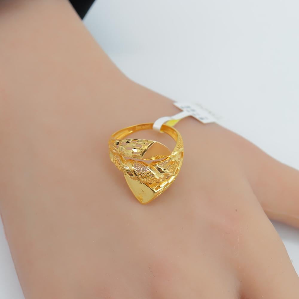 مصنوع من ذهب عيار 21 صافي وبوزن 3.8 جرام يعطي إحساس فخم على اليد، أما تصميمه الفريد فهو اللي يفرقك عن الباقي — لا كلاسيكي بزيادة ولا مبالغ فيه، بالضبط التوازن اللي يحبه أهل الذوق.