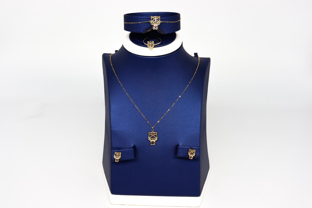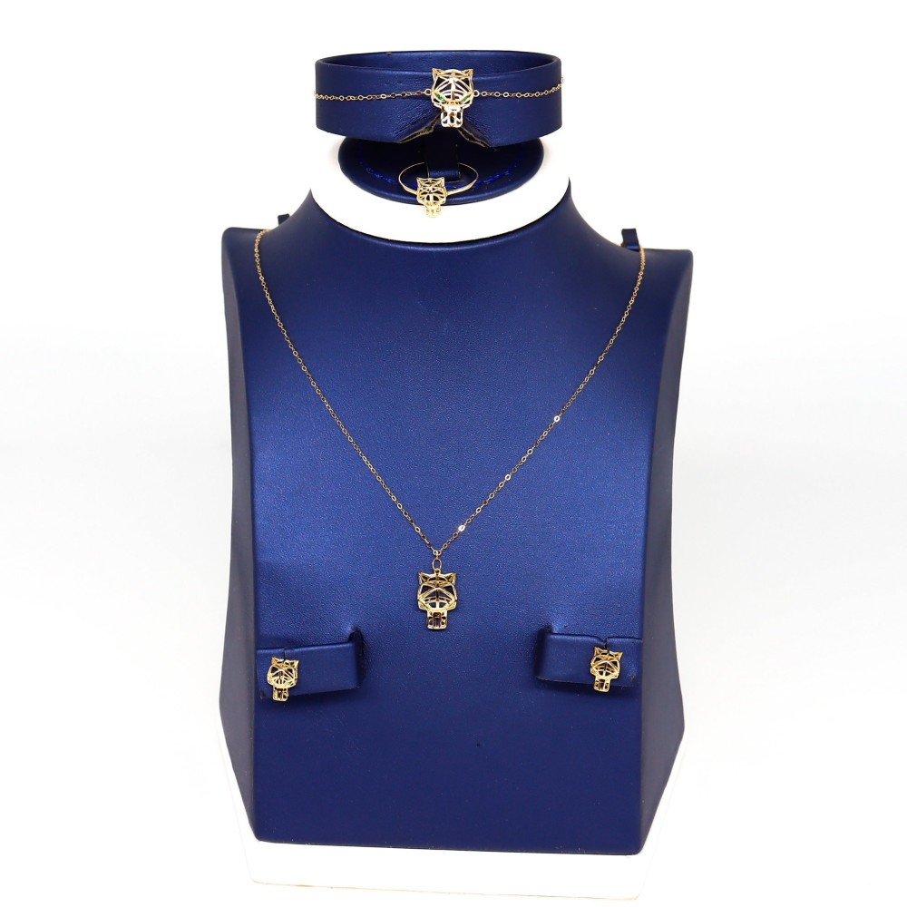 تفردي عن الكل بإطلالات لا تُنسى،أضيفي طقم ذهب عيار 18 هذا الى إطلالاتك واستمتعي بلمسة الفخامة والجمال التي سيضيفها لكِ. طقم يتميز بتفاصيل فخمة بفضل تصميمها المبتكر المستوحى من الرقي والاناقة، صمم خصيصًا للباحثات عن التفرد في قطعهنّ من المجوهرات، صنع ليعبر عن اطلاله تليق بك سيدتي ، اطلبية الان واستمتعي بذهب يدوم لأجلك.