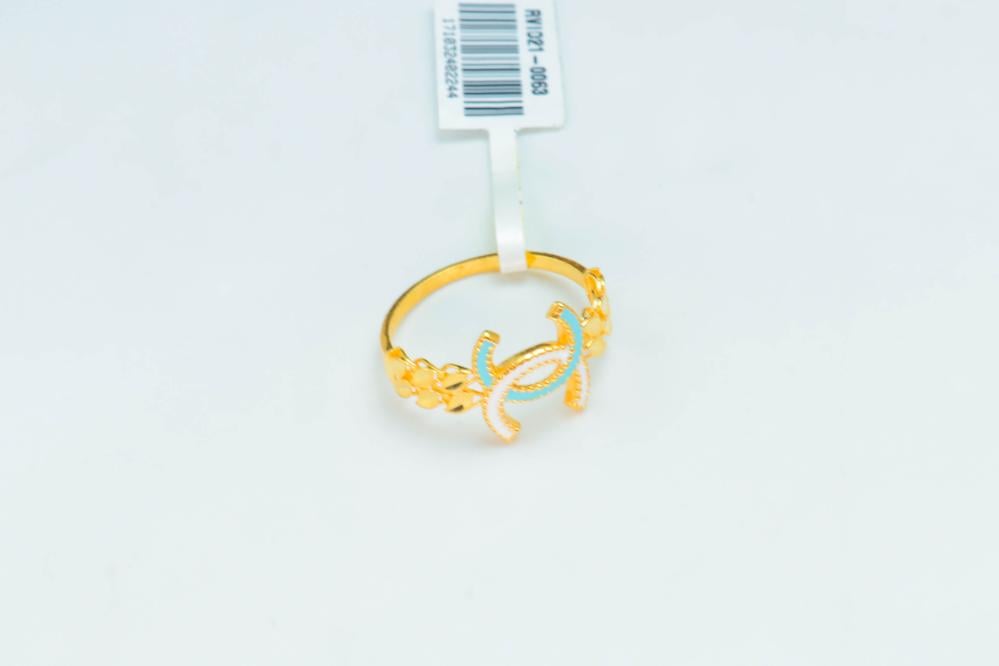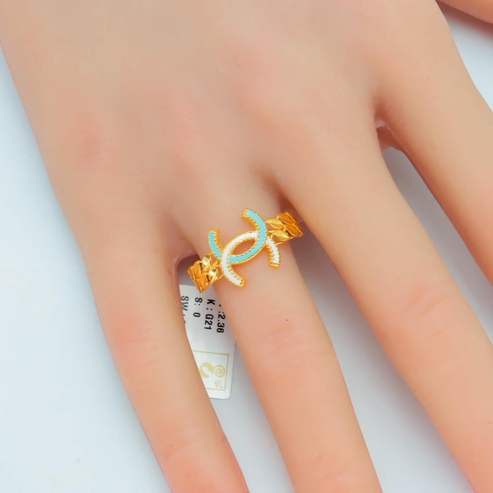 خاتم ذهب إيطالي عيار 21 مطعّم بالميناء الملون، بوزن خفيف 2.2 جرام، يجمع بين الفخامة والبساطة في نفس الوقت.