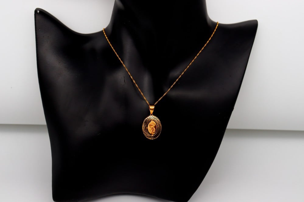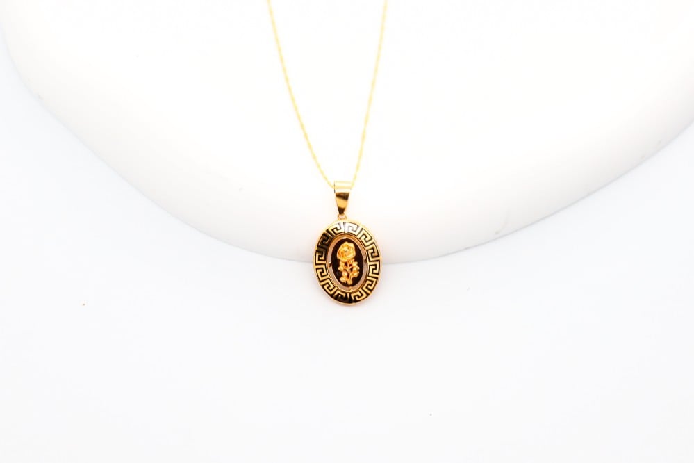 تعليقة سبيكة الوردة البيضاوي مع سلسال عيار 21 بتصميمه الخيالي وبتفاصيله الجميله صنع ليعبر عن اطلاله تليق بك سيدتي ، اطلبيها الان واستمتعي بذهب يدوم لأجلك.